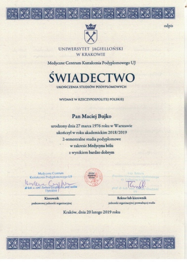 Czy Maciej Bujko przyjmuje online, bez konieczności pojawiania się w placówce?Tak, Maciej Bujko oferuje konsultacje online. Wybierz opcję „konsultacja online” przy umawianiu wizyty, a zobaczysz dostępne terminy.