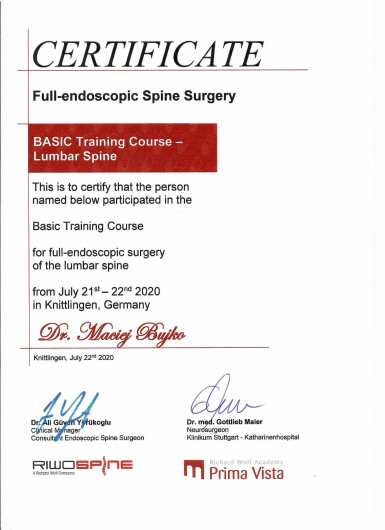 > pełen zakres chirurgii endoskopowej kręgosłupa