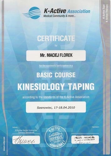 - Uczestnik wielu szkoleń z zakresu medycyny sportowej i ortopedycznej