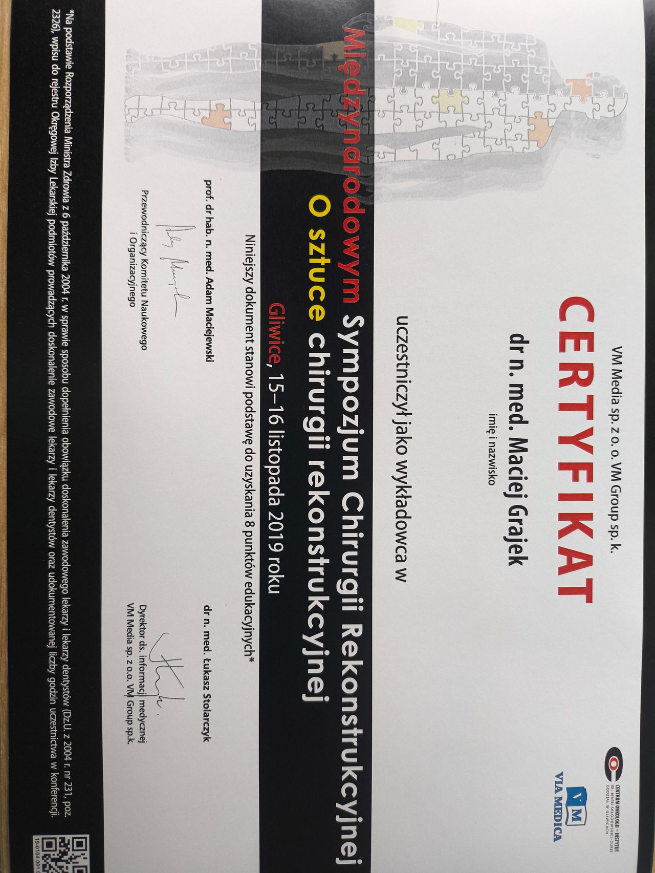 Obroniłem z wyróżnieniem doktorat z mikrochirurgii rekonstrukcyjnej. Od 2021 posiadam tytuł doktora habilitowanego.