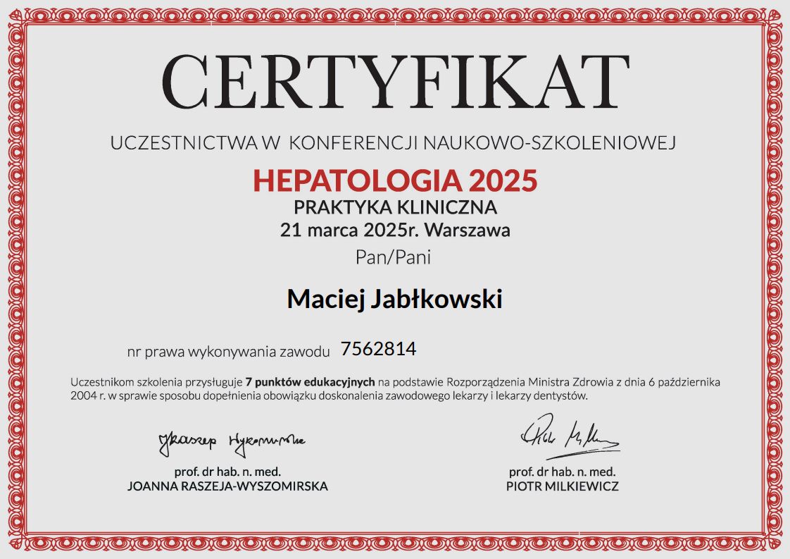 Pan doktor bardzo miły i empatyczny. Wyjaśnił mi dokładnie parametry związane z funkcjonowaniem wątroby. Z pewnością skorzystam z wizyty Pana doktora kolejny raz.