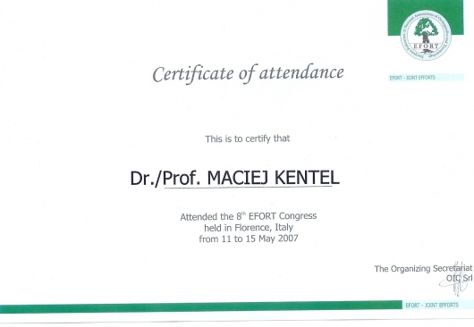 Dr. Kentel wykonywał zabieg artroskopii stawu kolanowego. Mogę z całą stanowczością powiedzieć, że jestem w pełni usatysfakcjonowany przebiegiem operacji oraz opieką pooperacyjną. Dr. Kentel to lekarz z powołania i prawdziwy fachowiec w dziedzinie ortopedii. Polecam serdecznie.
