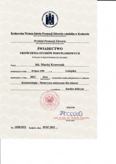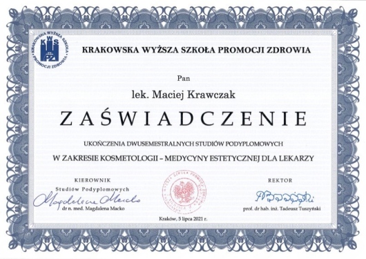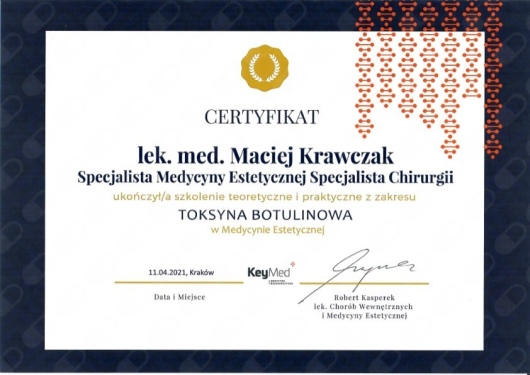 Doktor Maciej Krawczak jest specjalistą w zakresie chirurgii ogólnej oraz medycyny estetycznej.