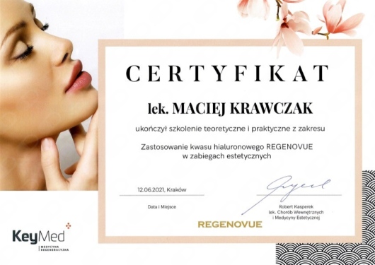 Doktor Maciej Krawczak jest lekarzem, który umiejętnie łączy szeroką wiedzę medyczną i doświadczenie zawodowe z sympatycznym, otwartym podejściem do pacjentów i ich problemów. Pacjenci chwalą jego profesjonalizm i indywidualne podejście do problemu zdrowotnego. Zaznaczają, że dr Maciej Krawczak od pierwszej chwili wzbudza zaufanie, co ma przecież duże znaczenie w przypadku tak delikatnej i wrażliwej sfery jak chirurgia estetyczna i plastyczna.