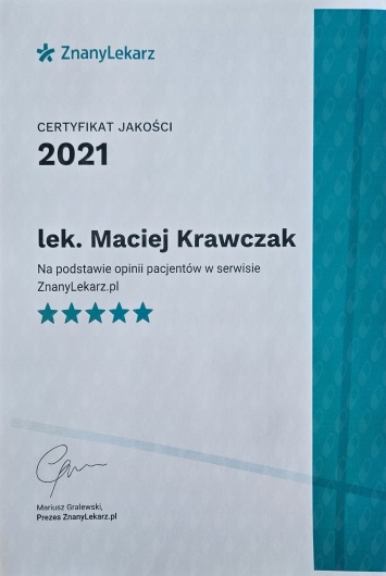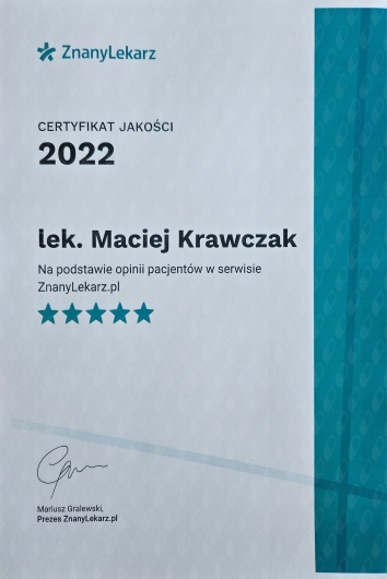 Maciej Krawczak: co mówią pacjenci?356 osób dodało swoją opinię. Maciej Krawczak ma średnią ocen 5 (na 5 gwiazdek).