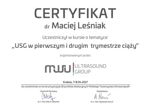 W naszej placówce realizowane są badania dla kobiet w ciąży, w tym USG z analizą obciążeń genetycznych w I, II oraz III trymestrze ciąży. W ramach badań I trymestru istnieje możliwość przeprowadzenia testu podwójnego, tzw. Testu PRISCA. Badania wykonywane są z użyciem obrazowania w 3D/4D z możliwością nagrania filmu i wydruku zdjęć.