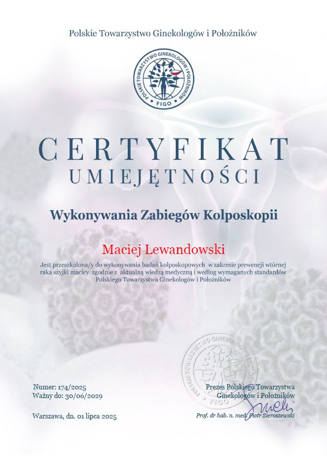 Jaki jest zakres porad oferowanych przez Maciej Lewandowski?Maciej Lewandowski to ginekolog. Na podstawie swojego doświadczenia i wykształcenia Maciej Lewandowski oferuje usługi takie jak: Badania prenatalne, kolposkopia, Szczepienie przeciw HPV, testy HPV, Antykoncepcja, operacja plastyczna miejsc intymnych, operacja plastyczna warg sromowych, cytologia, cytologia cienkowarstwowa LBC, konsultacja ginekologiczna.