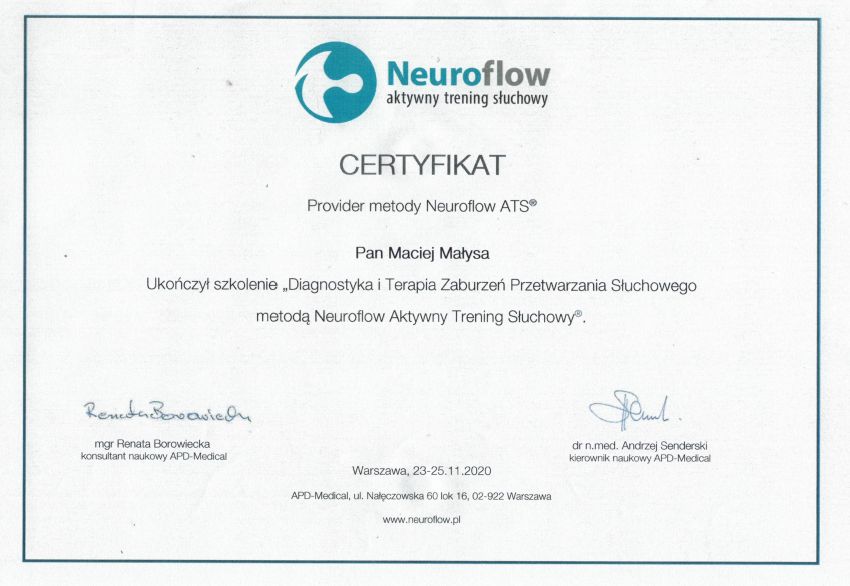 Jaki jest zakres porad oferowanych przez Maciej Małysa?Maciej Małysa to protetyk słuchu. Na podstawie swojego doświadczenia i wykształcenia Maciej Małysa oferuje usługi takie jak: protezy, konsultacja protetyczna, tympanometria, otoemisja akustyczna (badanie OAE), badanie BERA (ABR) – badanie słuchowych potencjałów pnia mózgu (bez konsultacji lekarskiej), badanie słuchu, Diagnoza CAPD – zaburzeń centralnego przetwarzania słuchowego, Diagnoza Neuroflow, QEEG badanie aktywności mózgu, Biofeedback.