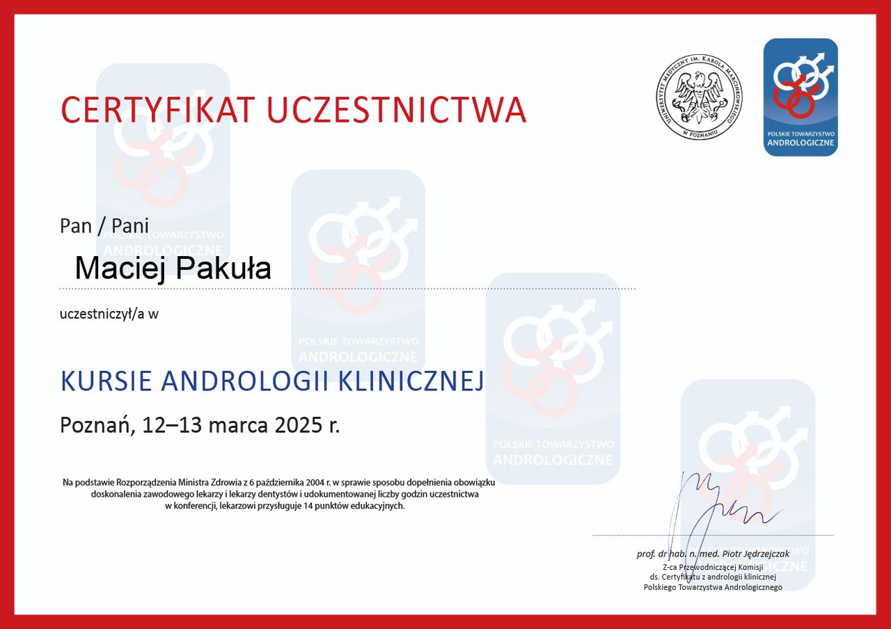 Czy Maciej Michał Pakuła przyjmuje online, bez konieczności pojawiania się w placówce?Nie, w tym momencie Maciej Michał Pakuła nie oferuje konsultacji online.