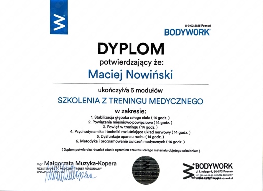 Pan Maciej dołożył wszelkich starań aby dobrać optymalne ćwiczenia i z czasem je progresować. Było to moim zdaniem kluczowe do znacznej poprawy.