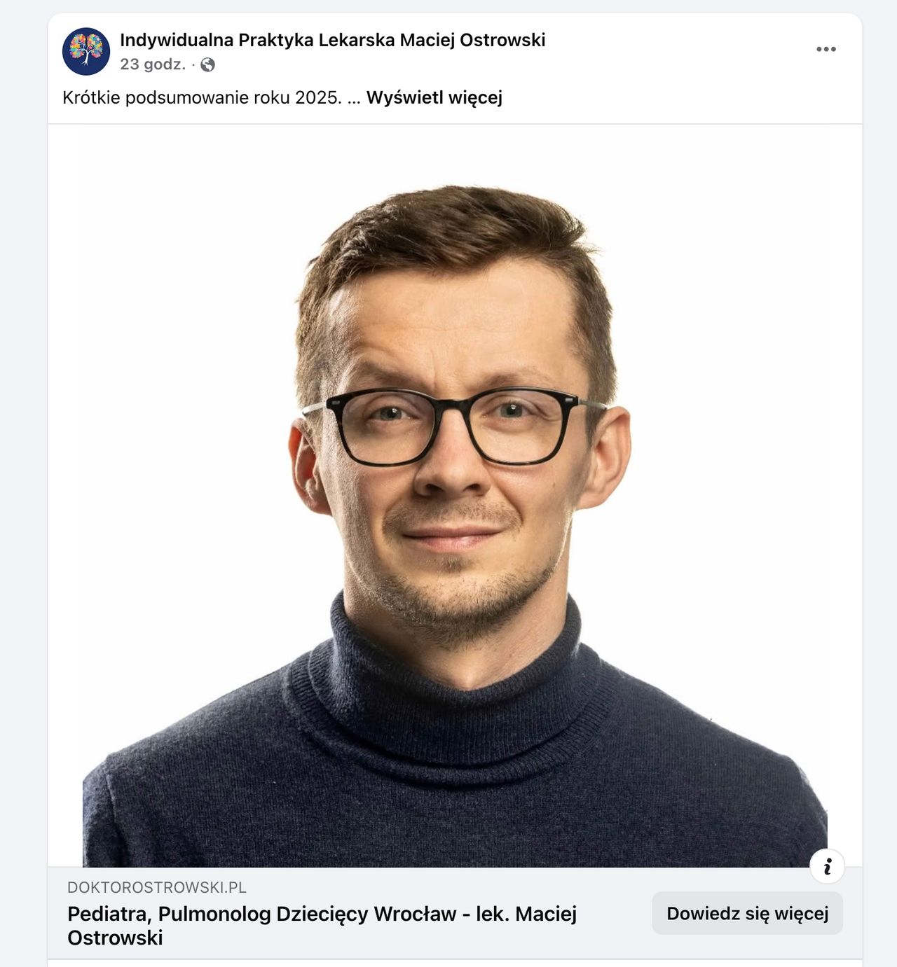 Więcej informacji na temat praktyki można znaleźć na stronie internetowej www.doktorostrowski.pl oraz na profilu w serwisie Facebook