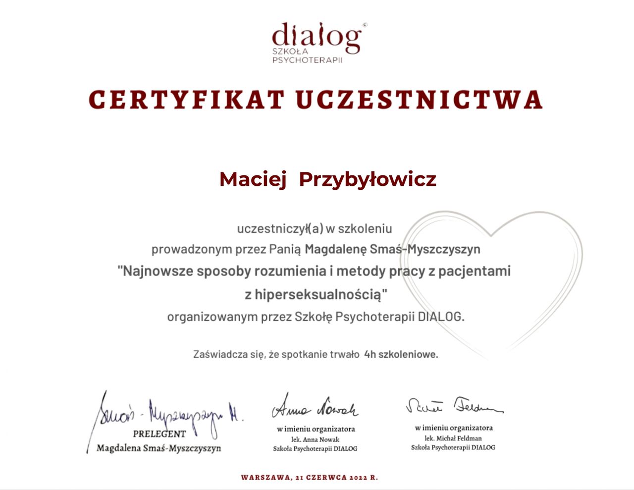Czy Maciej Przybyłowicz przyjmuje online, bez konieczności pojawiania się w placówce?Tak, Maciej Przybyłowicz oferuje konsultacje online. Wybierz opcję „konsultacja online” przy umawianiu wizyty, a zobaczysz dostępne terminy.