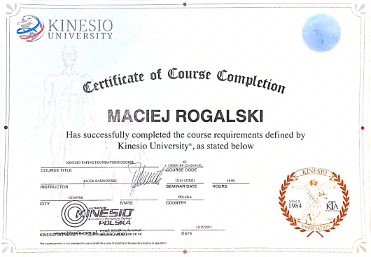 - Kurs Taping Metoda Kinesio® : tapy oklejane są na ciele w celu złagodzenia bólu i stanów zapalnych, odciążenia przemęczonych mięśni i wsparcia ich pracy przez cały dzień. Taśmy Kinesio® stosuje się w leczeniu wszelkich dolegliwości, począwszy od bólu głowy, a kończąc na bólach stop. Najczęstsze przykłady to rehabilitacja sportowa, zespół cieśni nadgarstka, bóle pleców (nadwichnięcia, wypadanie dysku), schorzenia kolan i barków i wiele innych.