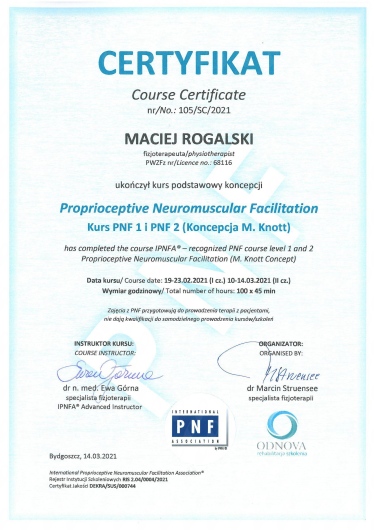 Jaki jest zakres porad oferowanych przez Maciej Rogalski?Maciej Rogalski to fizjoterapeuta. Na podstawie swojego doświadczenia i wykształcenia Maciej Rogalski oferuje usługi takie jak: konsultacja fizjoterapeutyczna, fizjoterapia, Fizjoterapia pourazowa, fizjoterapia przed- i pooperacyjna, kinezyterapia, konsultacja fizjoterapeutyczna dzieci, masaż całościowy – terapia manualna, Masaż leczniczy, masaż sportowy, medyczny trening rehabilitacyjny.