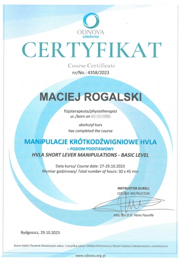 Aby zapewnić moim pacjentom najlepszą możliwą opiekę, dodatkowo ukończyłem zaawansowane szkolenia w zakresie: