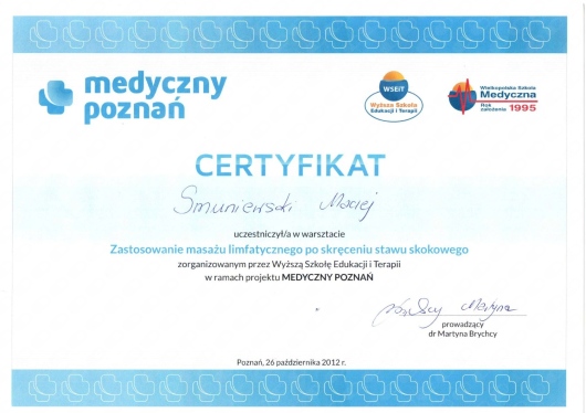 Na co dzień współpracuję z Lechem Poznań, gdzie pełnię funkcję osteopaty w pierwszej drużynie.