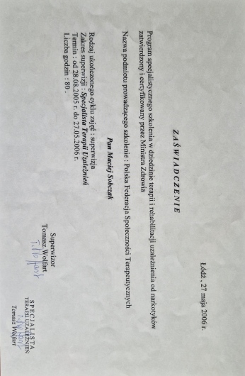 Polecam pana Macieja, moje rozmowy z Nim dają mi dużo optymizmu na dalsze życie bez nałogu