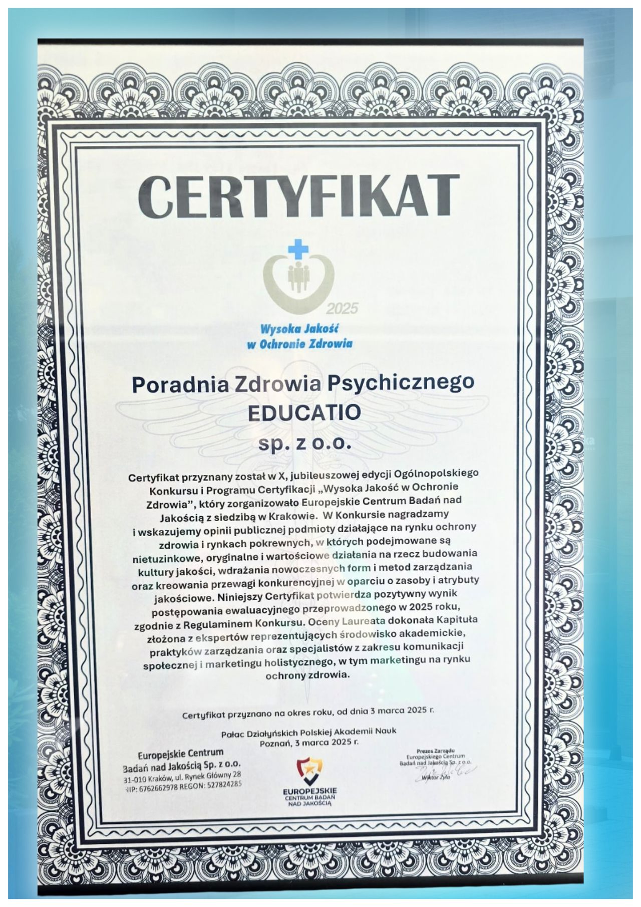 • PSYCHOKLINIKA Poradnie Zdrowia Psychicznego (EDUCATIO) • Konsultacja neurologiczna •