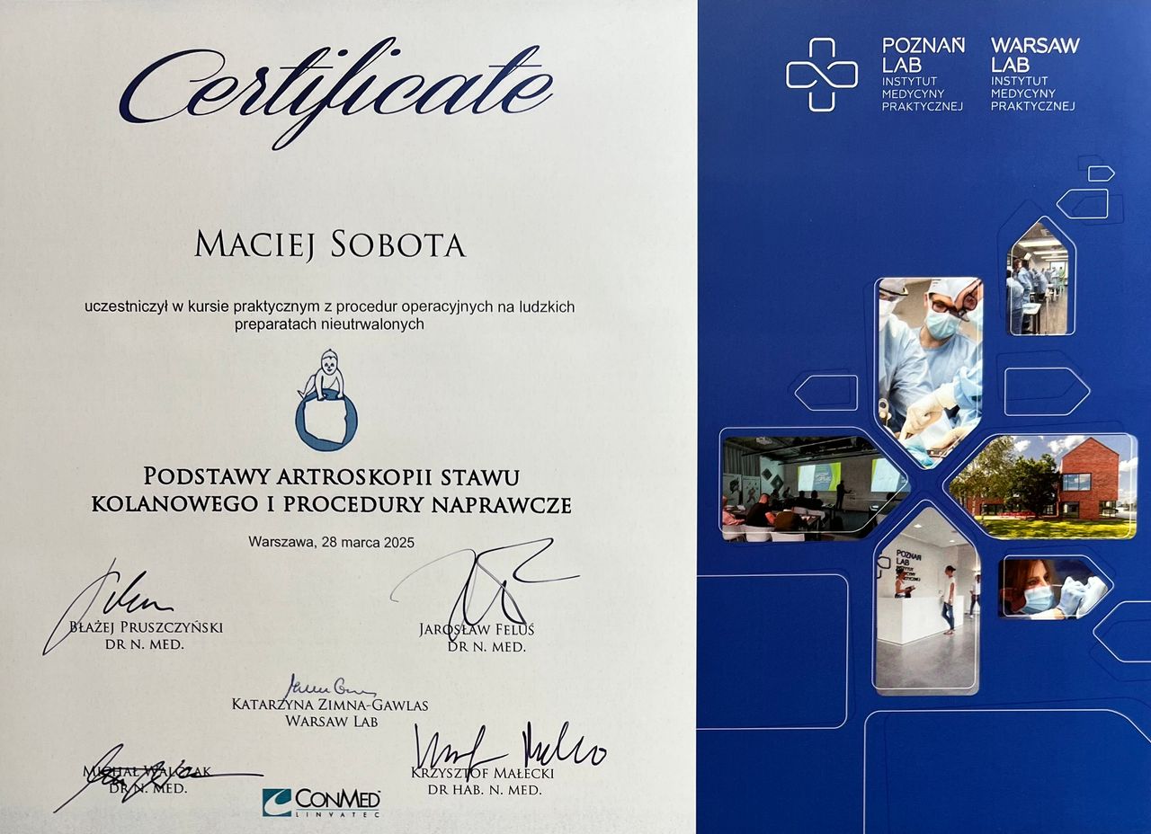 Jestem członkiem Polskiego Towarzystwa Artroskopowego.