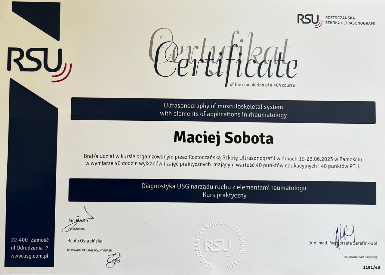 1. Diagnostyka USG narządu ruchu z elementami reumatologii. Kurs Praktyczny. Zamość