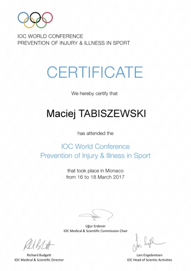 Doświadczenie zawodowe, szkolenie: Klinika Ortopedii i Traumatologii Szpitala im. W. Degi Uniwersytetu Medycznego w Poznaniu oraz Rehasport Clinic w Poznaniu.