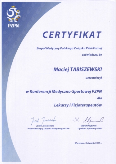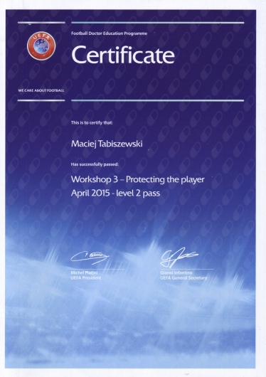 Do sezonu 2017/2018 byłem lekarzem I drużyny piłkarskiej Legii Warszawa. Przez wiele lat (2010 - 2017) lekarz Reprezentacji Polski U21 w piłce nożnej.