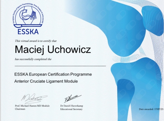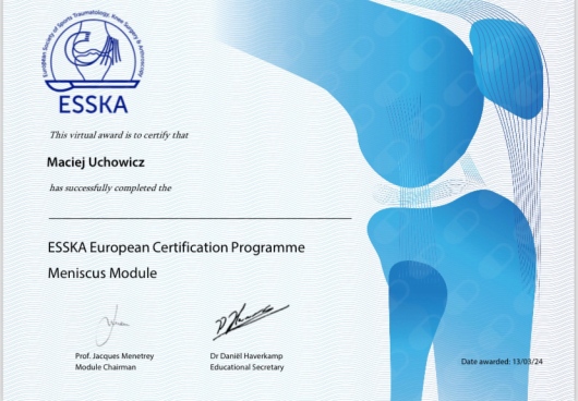 Up to now, he is one of the few doctors in Europe, who have attended a set of advanced courses of the Shoulder and Knee Surgery, organized by ESSKA.