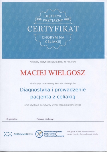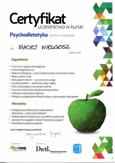 Pan Maciej to profesjonalista, jest empatyczny i ma ogromną wiedzę w dziedzinie dietetyki.
