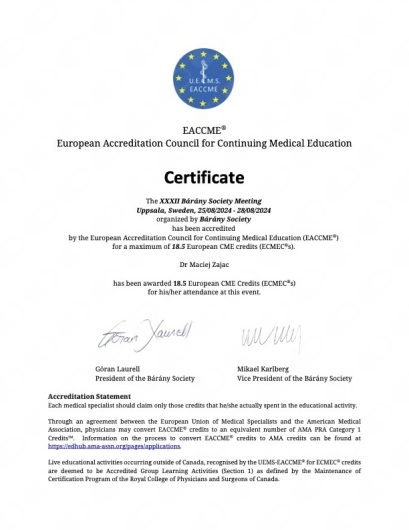 Jestem członkiem Polskiego Towarzystwa Otorynolaryngologów, Chirurgów Głowy i Szyi.