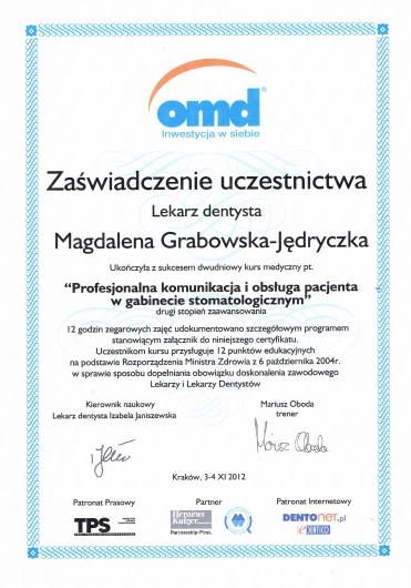 „Profesjonalna komunikacja i obsługa pacjenta w gabinecie stomatologicznym”