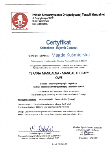 Polecam z całego serca. Od lat zmagałam się z bólem w odcinku szyjnym, odbyłam wiele nieskutecznych wizyt u innych specjalistów, aż w końcu trafiłam do wspaniałej Pani Magdy, która trafnie zdiagnozowała obszar do pracy i pomogła mi już podczas pierwszej sesji. W mojej opinii P. Magdę wyróżnia ogrom wiedzy, skuteczność, empatia oraz ponadprzeciętne zaangażowanie w pracę. To profesjonalistka, która naprawdę chce pomóc pacjentowi. Dziękuję, Pani Magdo!