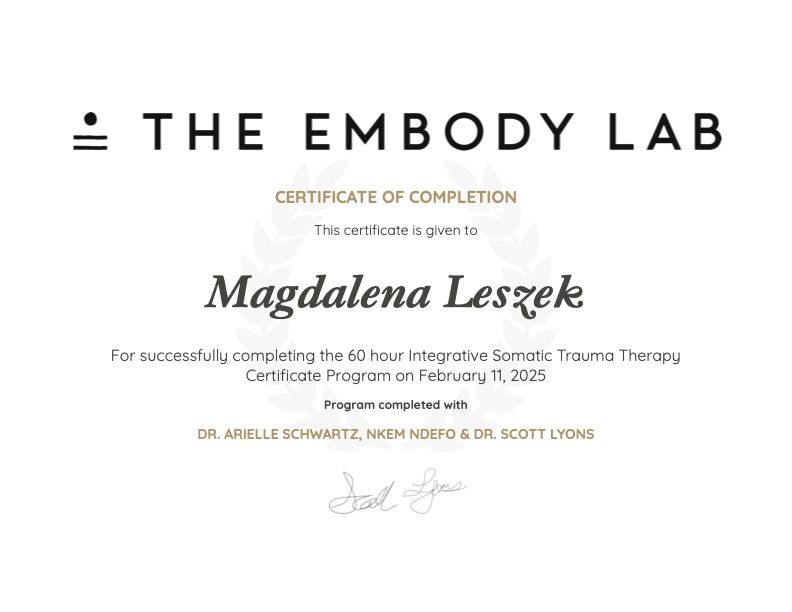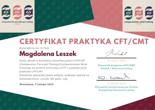 Z całego serca polecam terapię u Pani Magdy. To niezwykle empatyczna, zaangażowana i kompetentna terapeutka, który stworzyła bezpieczną i pełną zrozumienia przestrzeń do rozmowy. Rozpoczynając terapię byłam w naprawdę bardzo trudnej sytuacji życiowej i jeszcze gorszym stanie psychicznym, więc otwarcie się i mówienie o moich trudnościach było trudnym procesem, przez który Pani Magda przeprowadziła mnie z dużym wyczuciem. Już od pierwszego spotkania czułam się wysłuchana i zrozumiana. Terapia u Pani Leszek przynosiła realne wsparcie i dała mi narzędzia do lepszego radzenia sobie z trudnościami.