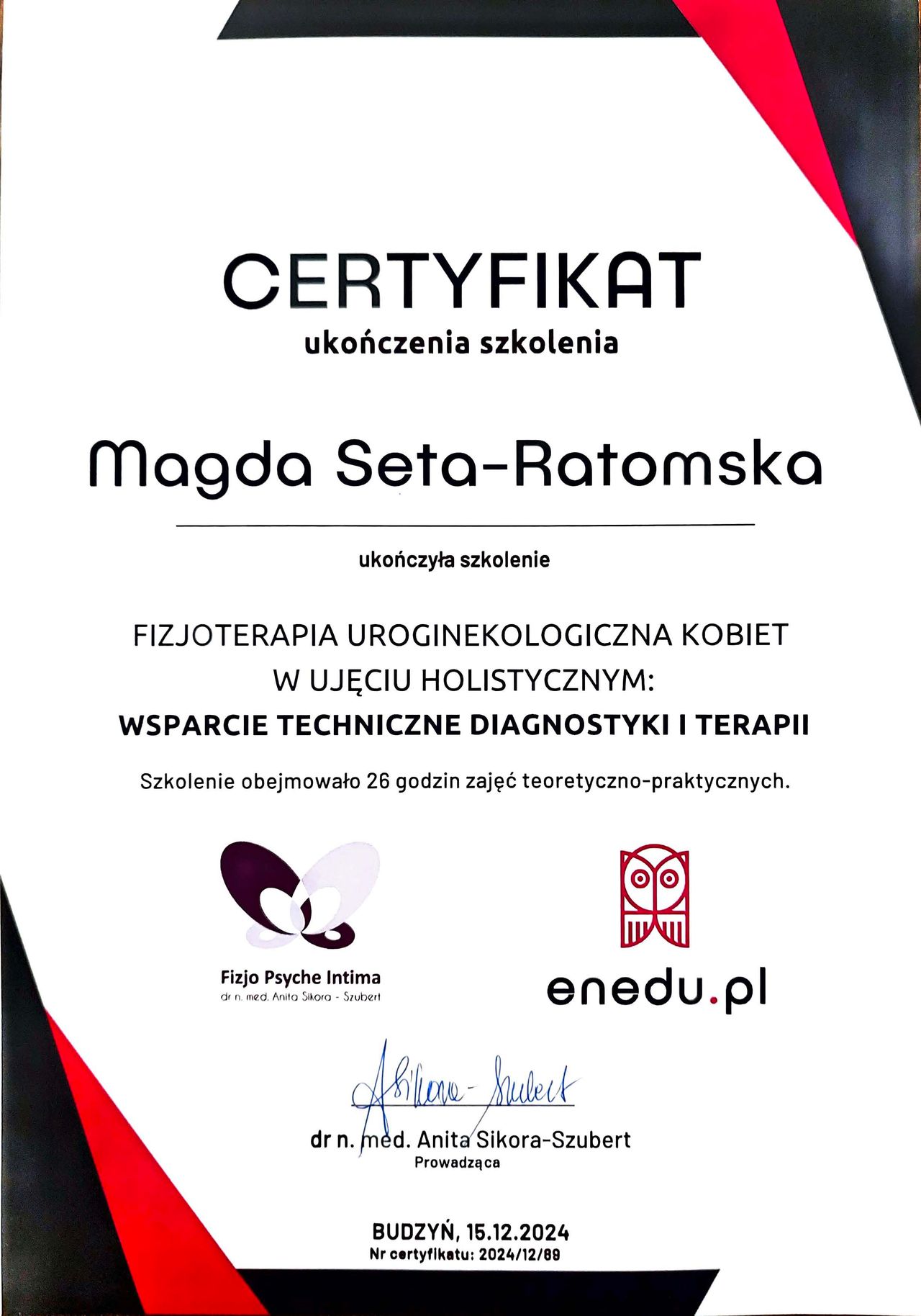 Witaj, nazywam się Magdalena, a moją pasją jest pomoc ludziom w osiągnięciu optymalnego zdrowia poprzez holistyczne podejście do leczenia. Jako doświadczona fizjoterapeutka uroginekologiczna, hirudoterapeutka, specjalistka w dziedzinie dietetyki oraz terapeutka wisceralna, wierzę, że prawdziwe leczenie leży w zrozumieniu całego ciała, a nie tylko w leczeniu symptomów.