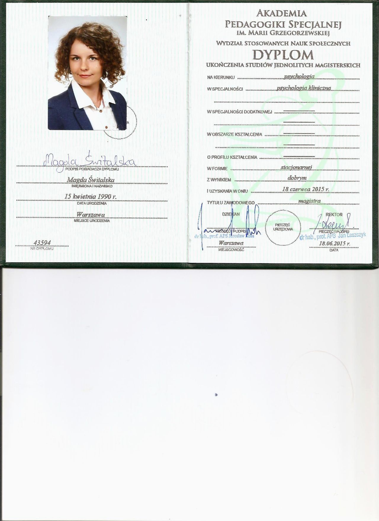 Ukończyłam szkolenie I-stopnia Psychodramy wg Moreno (posiadam tytuł asystenta).