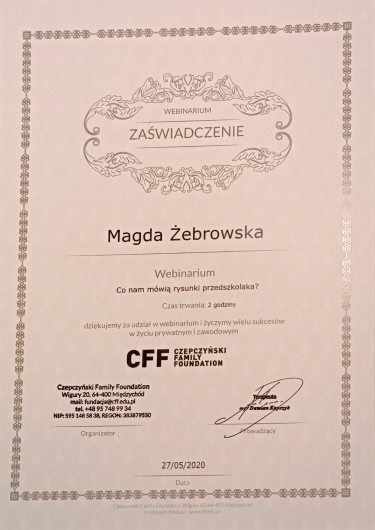 Pełne zaangażowanie, profesjonalizm, przyjazna atmosfera oraz super podejście do dzieci. Nasza 3-latka uwielbia spotkania z ciocią Magdą, nigdy nie chce wychodzić z gabinetu. Bardzo polecam!