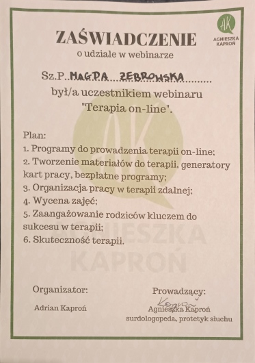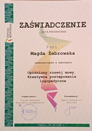 Pani Magda jest zaangażowana i świetnie prowadzi zajęcia.• Logoteka • korekcja wad wymowy •