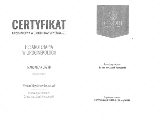 • Szkolenie ABC – Uroginekologii, prowadzący dr hab. med. J. Kociszewski,