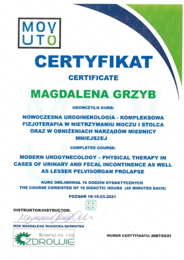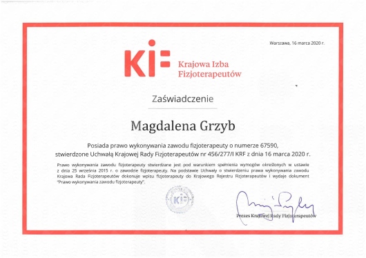 Pani Magda dokładnie tłumaczy sposoby i cele fizjoterapii i jest niezwykle życzliwa. Wizyty przebiegają w bezpiecznej atmosferze. Już po pierwszej wizycie widziałam pozytywne efekty współpracy. Nie bagatelizuje żadnej wątpliwości i angażuje się w potrzeby klienta.
