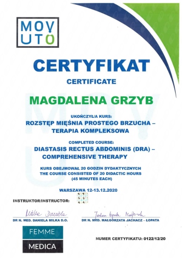 Pani Magda jest wspaniałą specjalistką. Opiekowała się mną podczas ciąży oraz wspierała mnie w okresie połogu. Dzięki szczegółowym wskazówkom opasowanym idealnie do mnie, byłam znakomicie przygotowana do porodu oraz połogu. Dziękuję Pani za wszystkie spotkania, które sprawiły, że moje ciało błyskawicznie wróciło do formy. Polecam wszystkim z całego serca!