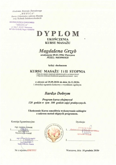 Do Pani Magdy trafiłam z polecenia. Jestem bardzo zadowolona. Efekty były widoczne już po pierwszej wizycie. Pani Magda wszystko szczegółowo tłumaczy i daje dużo cennych wskazówek.