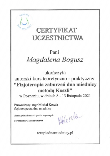 • Fizjoterapia zaburzeń dna miednicy metodą Koszli,