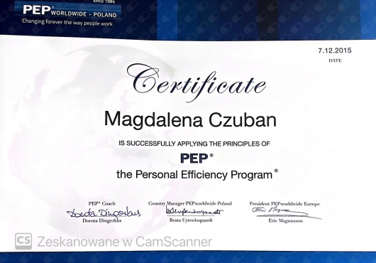 Jestem magistrem socjologii, ukończyłam także studia podyplomowe z coachingu z elementami psychologii.