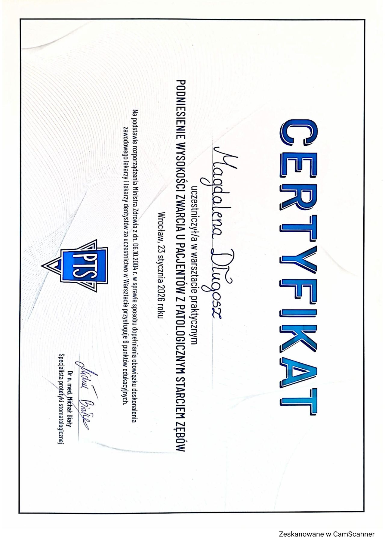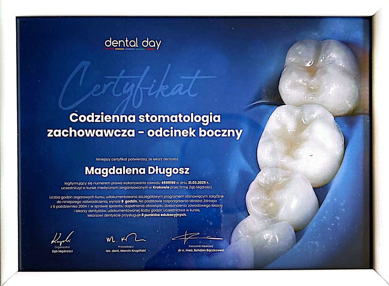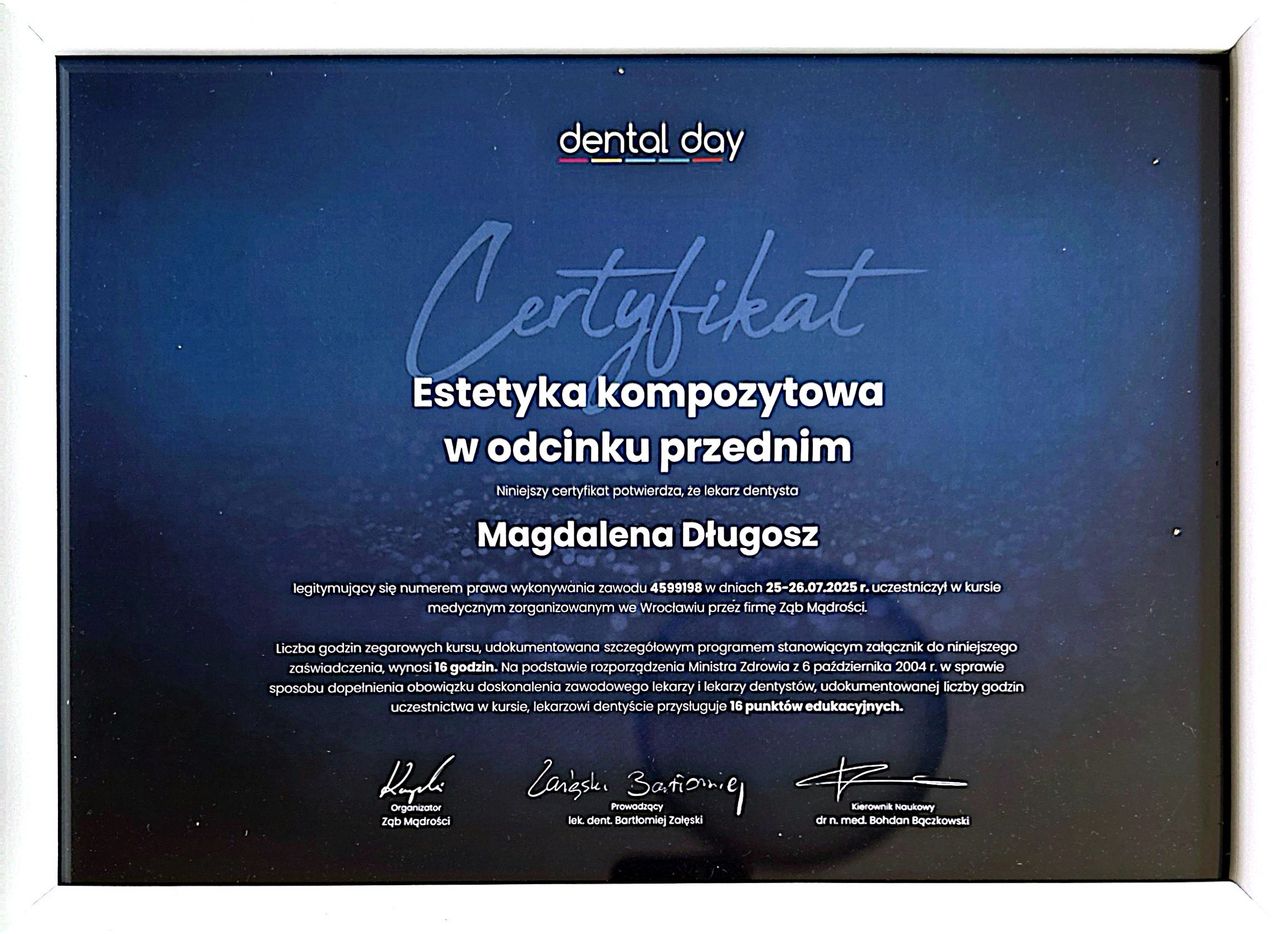 Jestem lekarzem dentystą, absolwentką Uniwersytetu Medycznego we Wrocławiu, gdzie zdobyłam przygotowanie teoretyczne i praktyczne do pracy z pacjentem. Zajmuję się stomatologią zachowawczą, endodoncją oraz podstawami chirurgii stomatologicznej. Stale poszerzam wiedzę poprzez udział w licznych kursach i szkoleniach, szczególnie w obszarze estetycznej odbudowy zębów i pracy z nowoczesnymi technologiami.