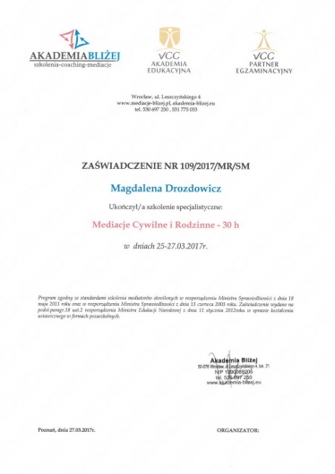 Nazywam się Magdalena Drozdowicz. Jestem psychologiem, psychoterapeutką i mediatorką spraw cywilnych i rodzinnych. Od ponad 20 lat wspieram osoby, które znalazły się w trudnych sytuacjach życiowych.