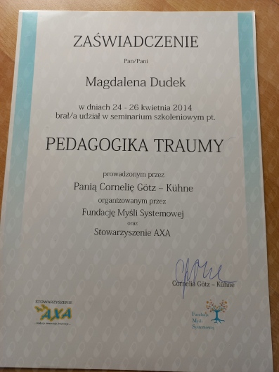 Spotkania z panią Magdalą pozwalają spojrzeć na różne sprawy zupełnie z innej strony, jednym celnym pytaniem potrafi dać mocno do myślenia i otworzyć nowe punkty widzenia na problemy. Duże pokłady empatii jakimi dysponuje pani Magda szybko pozwalają się otworzyć.