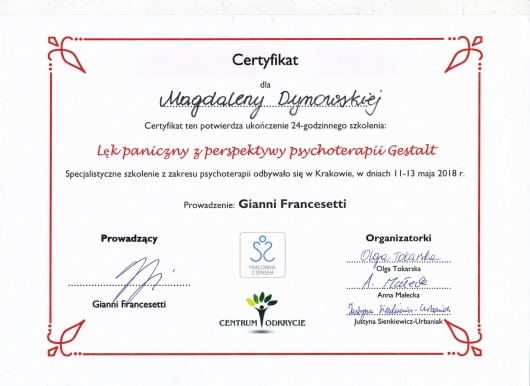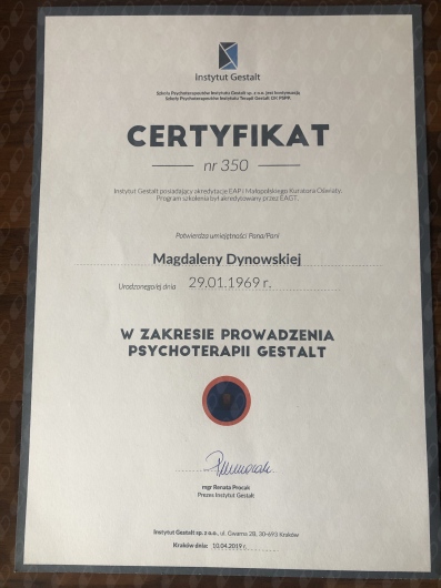 Dbając o wysoką jakość swojej pracy poddaję ją regularnej superwizji.