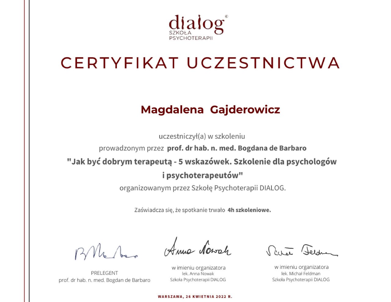 Z całego serca polecam.• Gabinet Psychoterapii Magdalena Gajderowicz • Psychoterapia •