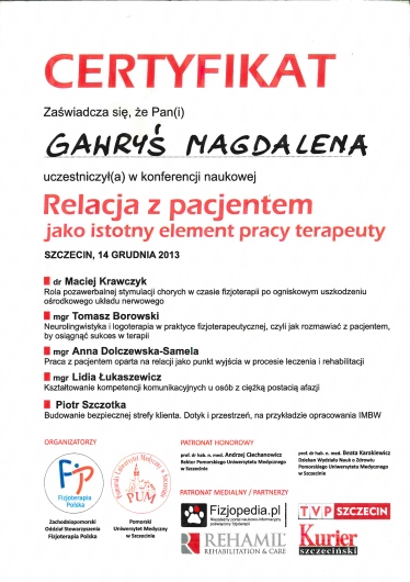 Kontynuuję terapię rozpoczętą w czerwcu.P Magda uważnie słucha,dobiera elementy terapii adekwatnie do występujących dolegliwości bólowych.