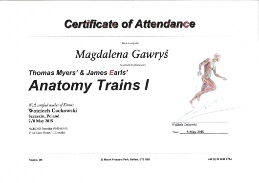 Wymienione umiejętności pozwalają mi na pracę z pacjentami: ze schorzeniami układu ruchu, np. w wyniku urazu, z bólami kręgosłupa, bólami w obrębie stawów obwodowych, z parestezjami, po operacjach (nie tylko ortopedycznych), z obrzękami, bólami głowy, bolesnymi miesiączkami, napiętymi mięśniami w wyniku przeciążenia fizycznego.