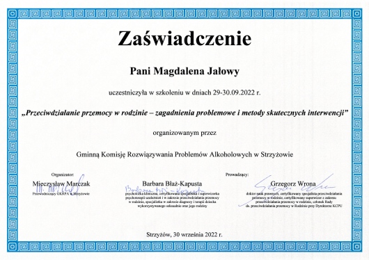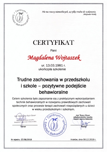 Jaki jest zakres porad oferowanych przez Magdalena Jałowy (Wojtaszek)?Magdalena Jałowy (Wojtaszek) to psycholog, psychoterapeuta. Na podstawie swojego doświadczenia i wykształcenia Magdalena Jałowy (Wojtaszek) oferuje usługi takie jak: Konsultacja psychologiczna, Psychoterapia, Diagnoza psychologiczna, psychoterapia par, psychoterapia online, Konsultacja psychologiczna online.